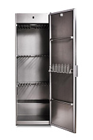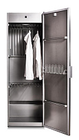 Прибор является отдельно стоящим и подключается к вентиляции для эффективной работы вытяжной системы. Перенавешиваемая дверь обеспечивает удобство эксплуатации вне зависимости от расположения. Нагревательный элемент и вентилятор находятся в верхней части, что обеспечивает максимально эффективное движение теплого воздуха. Наличие термовыключателя помогает регулировать температуру внутри, а плотно закрывающаяся при помощи уплотнительной ленты дверь снижает уровень шума.
