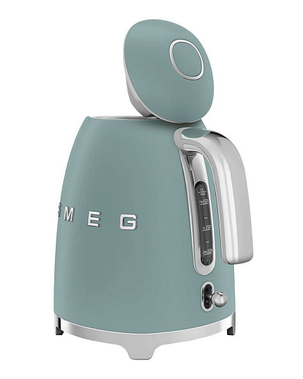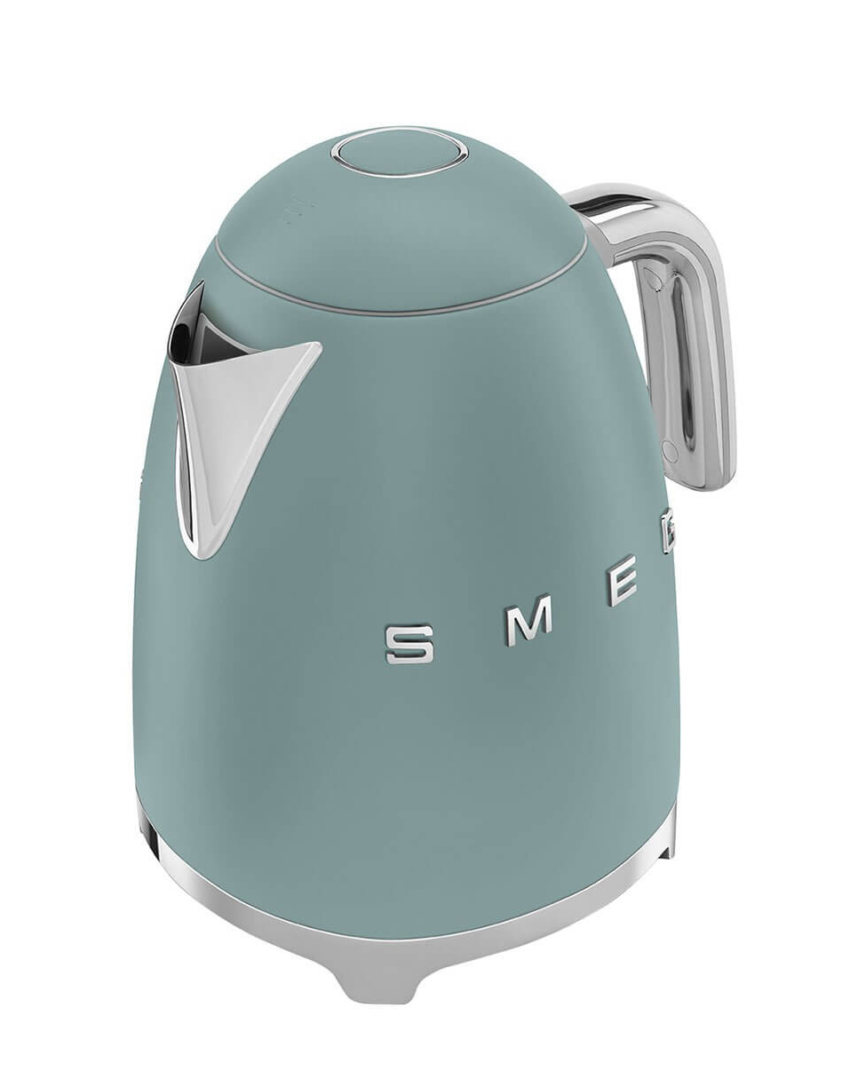 Чайник мощностью 2,4 кВт и объемом 1,7 литра принадлежит к многочисленной ретро-коллекции бытовой техники бренда. Основание, носик, ручка и рычаг включения выполнены из нержавеющей стали, наружная часть корпуса и крышка – из белого пластика. Электрочайник имеет традиционные для оборудования в стиле 50-х округлые и выпуклые формы, по центру большими буквами красуется название марки.
