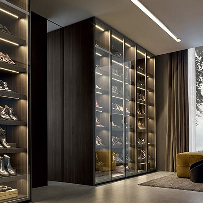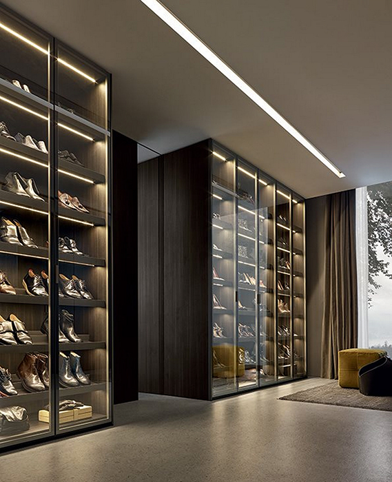 Шкаф SENZAFINE — сама квинтэссенция легкости. Благодаря эксклюзивному дизайну Родольфо Дордони, ваш шкаф или вся гардеробная становятся основными элементами дизайна помещения, поскольку для отделки фасадов используется стекло с отражающим эффектом. Это визуально увеличивает пространство и одновременно делает шкаф практически незаметным в интерьере.