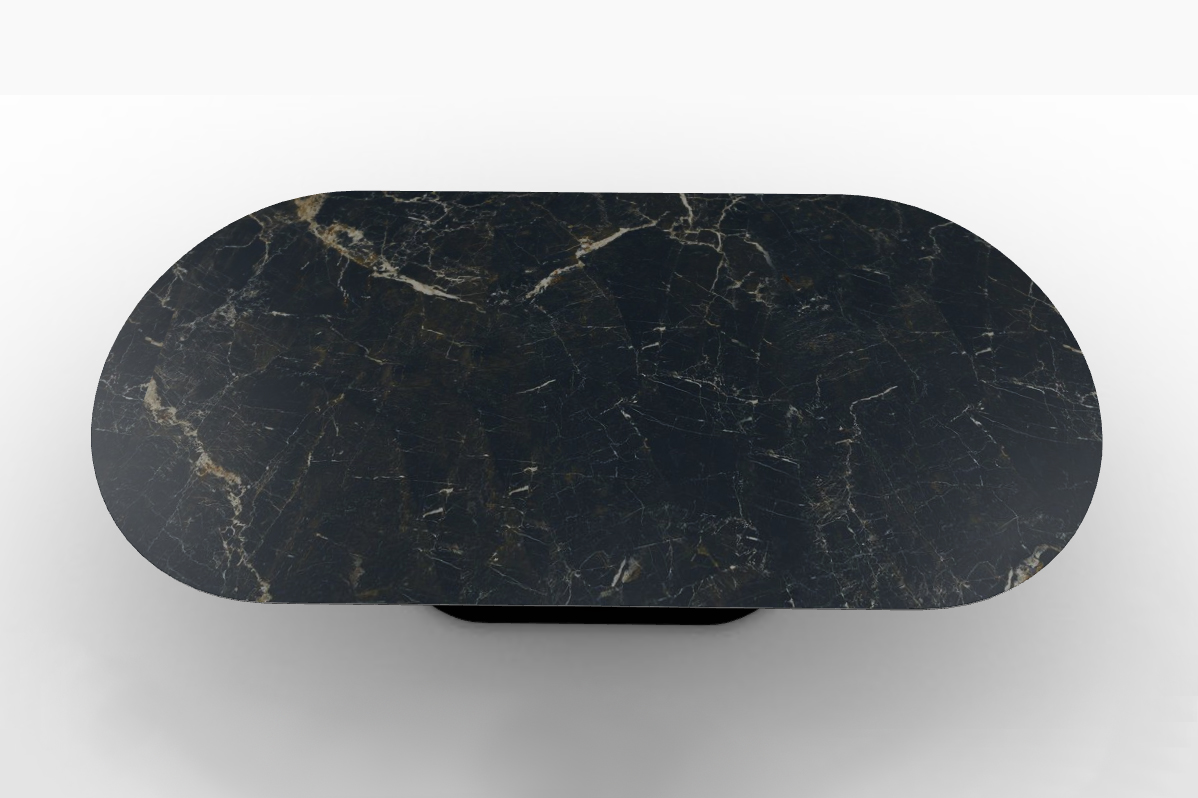 CAMEO – нераскладной стол с четким овальным силуэтом, который придает ему мощную индивидуальность. Керамическая столешница с эффектом мрамора красива и практична в использовании. Центральная колонна, сделанная из металла с покрытием, не только обеспечивает устойчивость, но и позволяет максимально использовать пространство под столешницей. Сочетание металла и керамики с эффектом мрамора создает игривый контраст между материалами и выглядит очень современно.