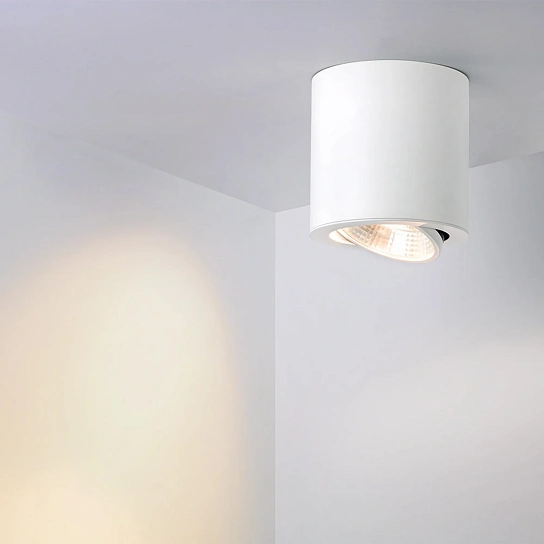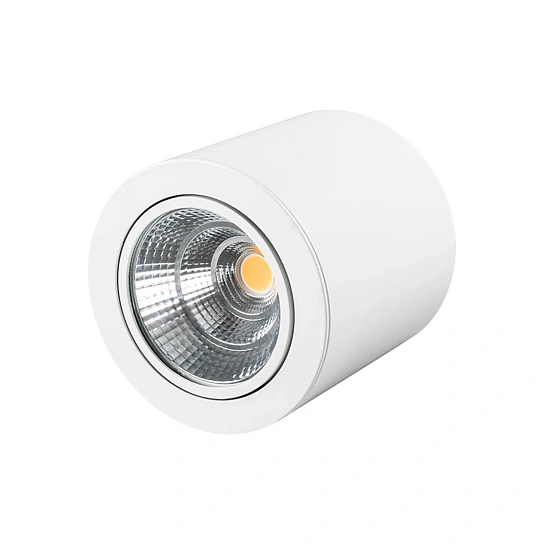 Накладной светодиодный светильник SP-FOCUS-R140-30W Day White мощностью 30 Вт с дневным белым цветом свечения (4000 K) и световым потоком 2700 лм для создания яркого направленного освещения. Регулируемый световой модуль с поворотным механизмом на 30° и узкий угол излучения 24° позволяет легко менять световые акценты в помещении, настраивая светильник без специальных инструментов. Индекс цветопередачи CRI>80 обеспечивает качественный свет, не вызывающий переутомления глаз. Корпус изготовлен из высококачественных материалов, которые позволяют сохранить эстетичный внешний вид светильника на протяжении всего срока эксплуатации. Компактные размеры цилиндрического корпуса и два цветовых решения (белый/черный) позволяют совместить светильники этой серии с любым интерьером и различными потолками. Светильник устанавливается накладным способом или с помощью подвеса. Поставляется в комплекте со встроенным драйвером , что дает возможность безопасно и быстро подключать светильник напрямую к сети 230 В. Пульсация менее 5% обеспечивает комфортное освещение без мерцания. Корпус выполнен с защитой от пыли IP20 для установки внутри помещений, где нет контакта с водой или другими жидкостями. Дополнительные аксессуары и регулируемый подвес приобретаются отдельно. Предназначен для основного, декоративного и акцентного освещения в жилых, офисных, торговых, выставочных, коммерческих и общественных помещениях. Возможность накладного или подвесного монтажа позволяет гармонично интегрировать светильники в помещения с разной высотой потолков.