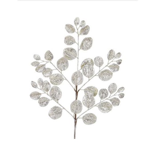 Ветка металическая из листьев падуба,перламутровый стебель,золото/белый 62 см